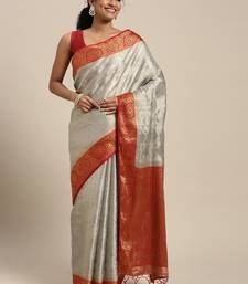 Grey woven art silk saree with blouse