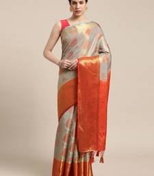 | Product Description | Grey Color Traditional Saree, With Woven Mixture Of Zari And Kalamkari Thread Design All Over , Has Zari Woven Border And Pallu And Tussel Work At The End , Comes With Orange Color Contrast Unstiched Brocade Blouse (Attached At The Last Of Saree) |