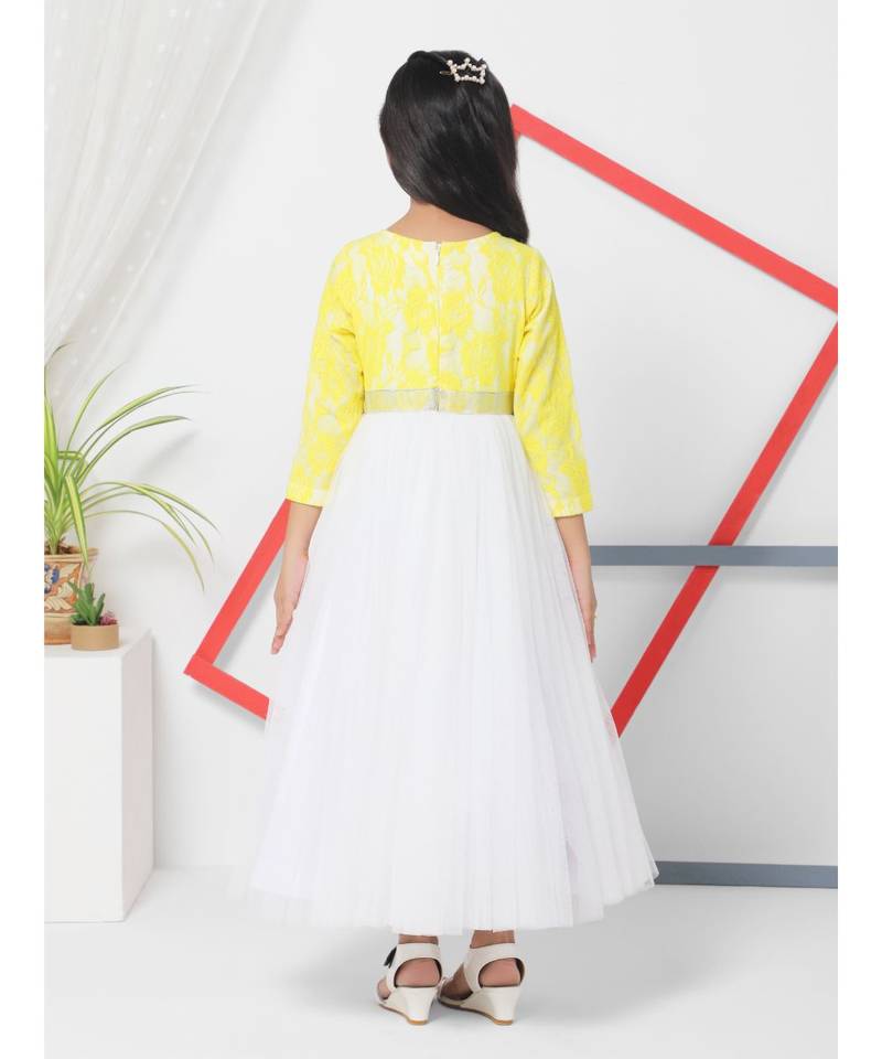 | Product Name | Netted Flared White And Yellow Gown For Dress | |