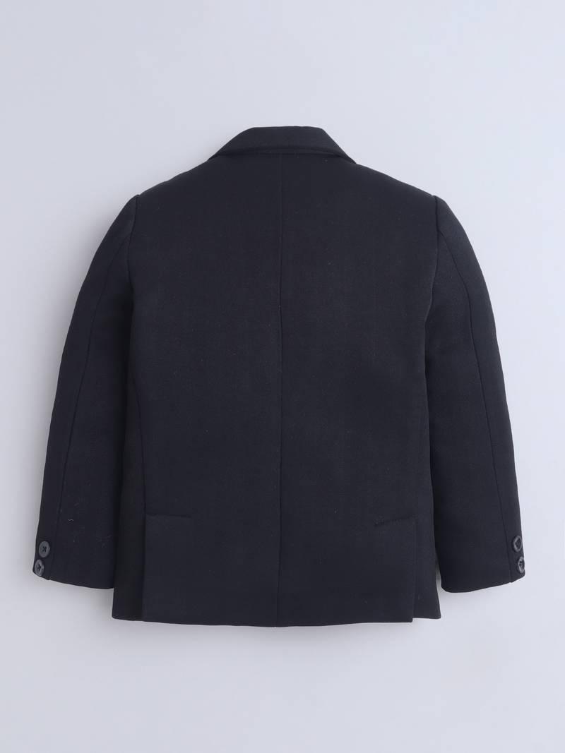Give Your Child A Refined, Gentleman Ready Look With This Classic Navy Blazer. Crafted With A Smooth, Structured Fabric, It Features A Sharp Notch Lapel Collar, Single Button Closure, And Neatly Designed Welt Pockets For A Clean, Tailored Finish. The Soft Inner Lining Ensures Comfort, Making It Perfect For Weddings, Parties, School Functions, Festive Celebrations, And Formal Occasions. A Timeless Wardrobe Staple That Pairs Effortlessly With Shirts, Trousers, Or Ethnic Wear For An Elevated Look.