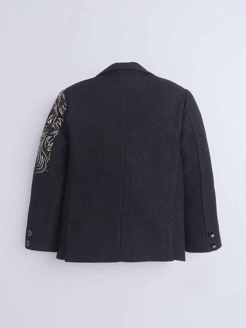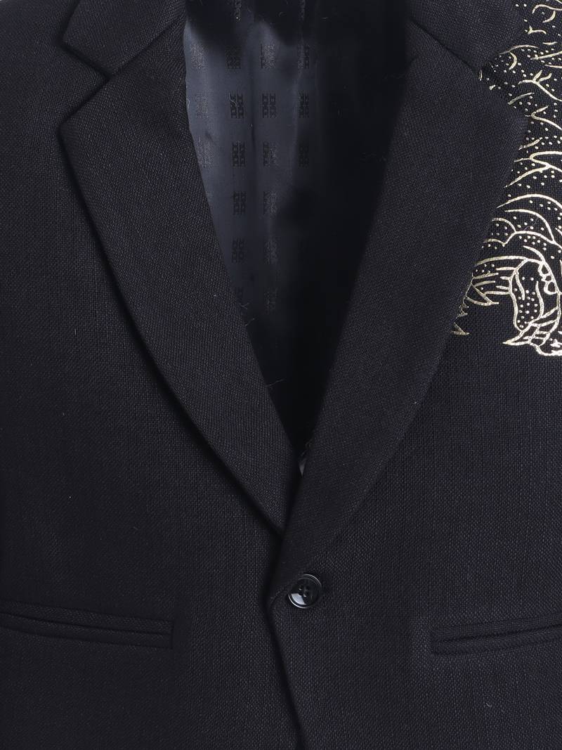Black cotton woven printed blazer