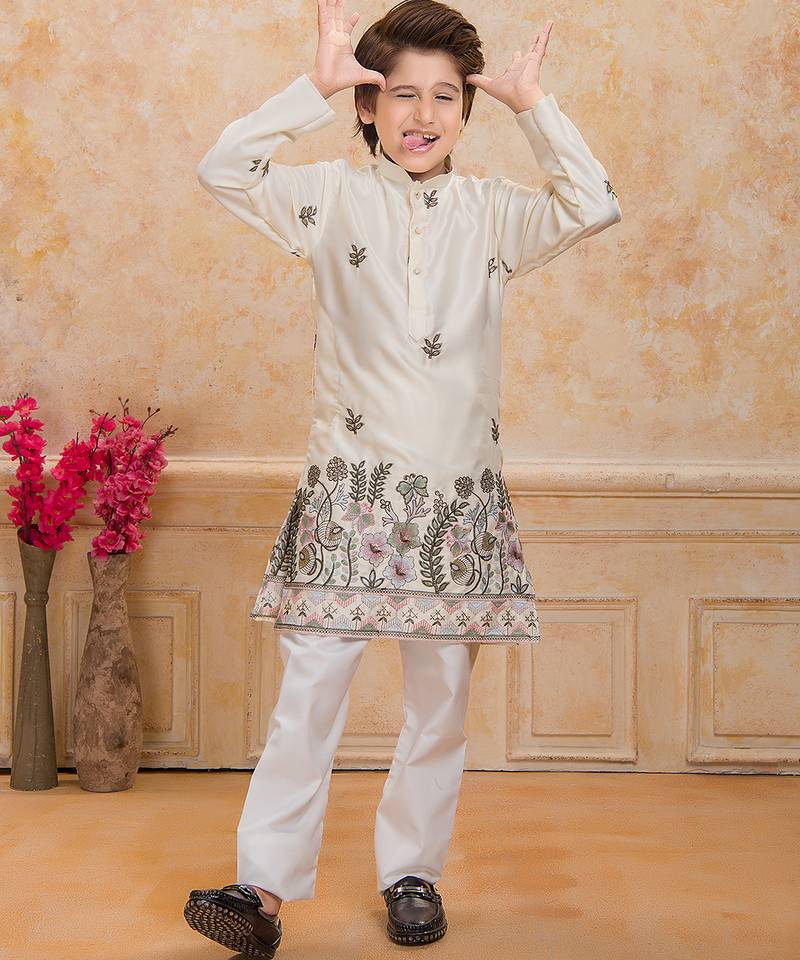 | Product Description | Stand Out Effortlessly In This Designer Kurta Set, Featuring A Truly Unique And Appealing Design. The Soft, Comfortable Kurta Fabric Is Enhanced By Scattered Motifs, Leading Down To A Striking Heavy Embroidered Border. This Multi Colored Artistic Border, Depicting Figures, Architecture, Or Landscapes, Transforms The Traditional Kurta Into A Statement Piece. Paired With Classic White Pyjamas, This Outfit Is Cheerful, Comfortable, And Guarantees A Memorable, Stylish Look For Any Festive Gathering Or Special Event." |