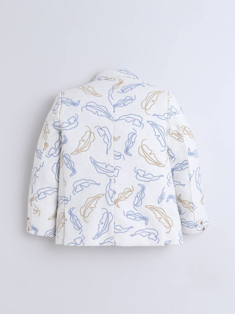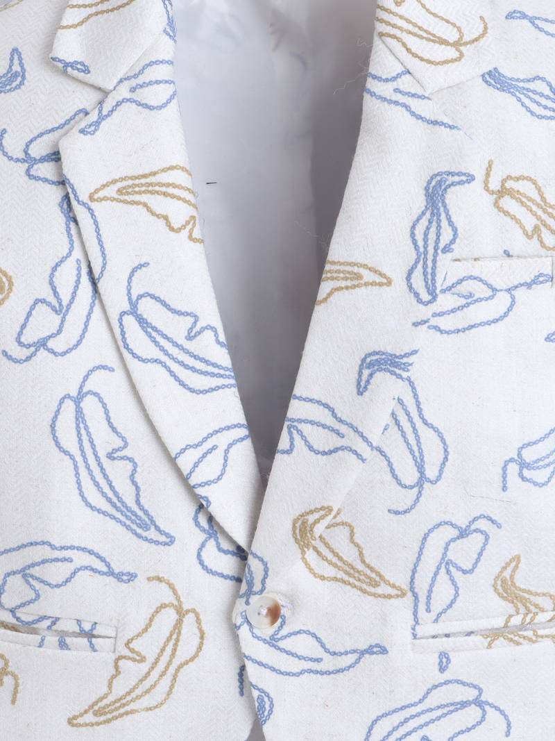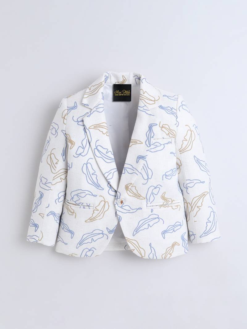 | Product Description | Introduce Contemporary Charm With This Stylish Kids' Single Button Blazer. Featuring A Crisp White Base Adorned With A Modern, Artistic Leaf Motif In Soft Powder Blue And Light Gold Outlines, This Jacket Is A True Statement Piece. The Classic Notched Lapel And Single Button Closure Ensure A Sharp, Tailored Fit. Perfect For Dressing Up Any Outfit, This Versatile Blazer Is Ideal For Weddings, Parties, And All Smart Casual Occasions, Offering Comfort And High End Style. |