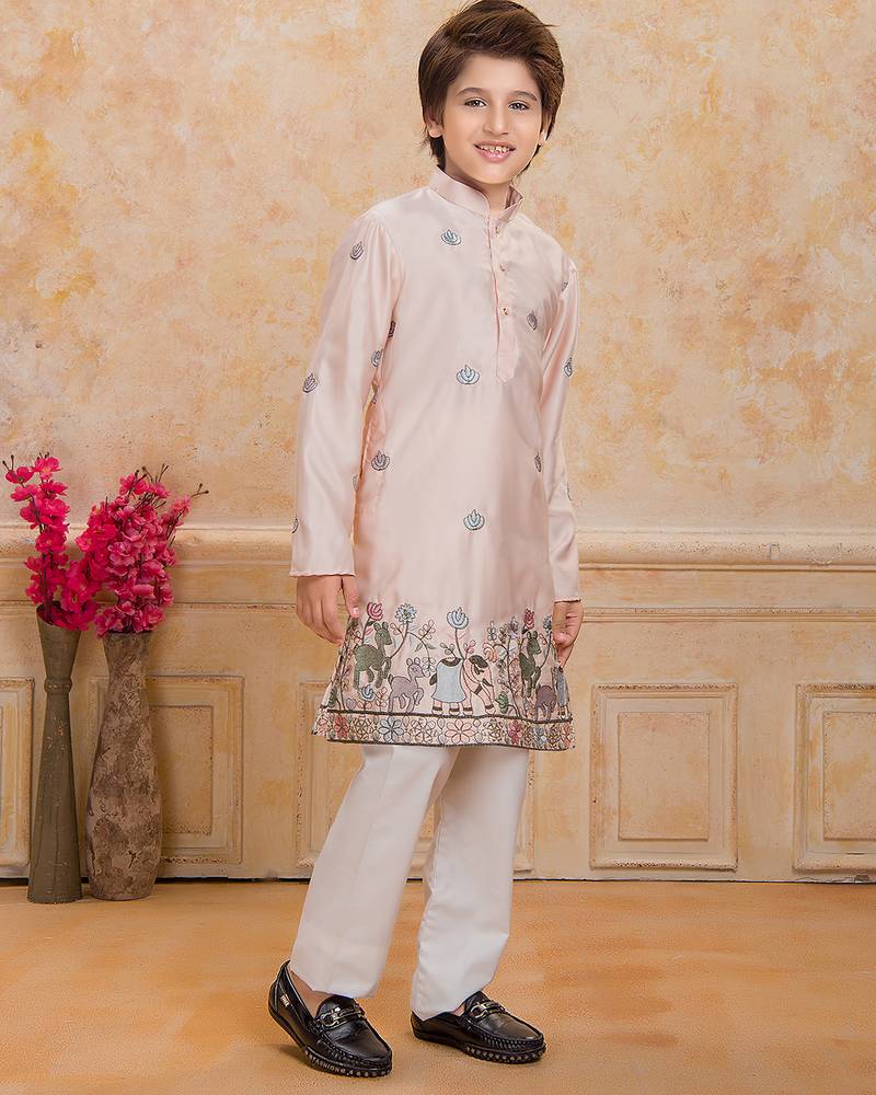 | Product Description | Stand Out Effortlessly In This Designer Kurta Set, Featuring A Truly Unique And Appealing Design. The Soft, Comfortable Kurta Fabric Is Enhanced By Scattered Motifs, Leading Down To A Striking Heavy Embroidered Border. This Multi Colored Artistic Border, Depicting Figures, Architecture, Or Landscapes, Transforms The Traditional Kurta Into A Statement Piece. Paired With Classic White Pyjamas, This Outfit Is Cheerful, Comfortable, And Guarantees A Memorable, Stylish Look For Any Festive Gathering Or Special Event." |