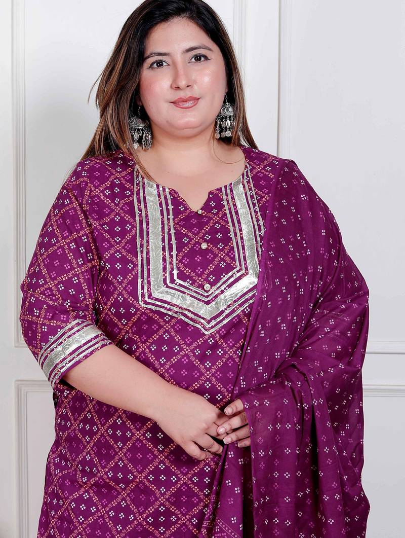 | Product Name | Plus Size Magenta Embroidered Cotton Kurta With Palazzo And Dupatta | |