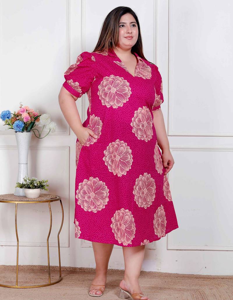 Product Name Plus Size Pink Printed Collar Neck Maxi Dress For Women