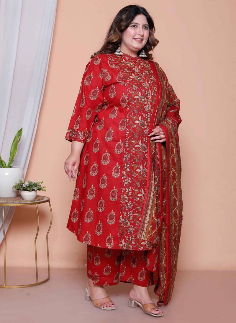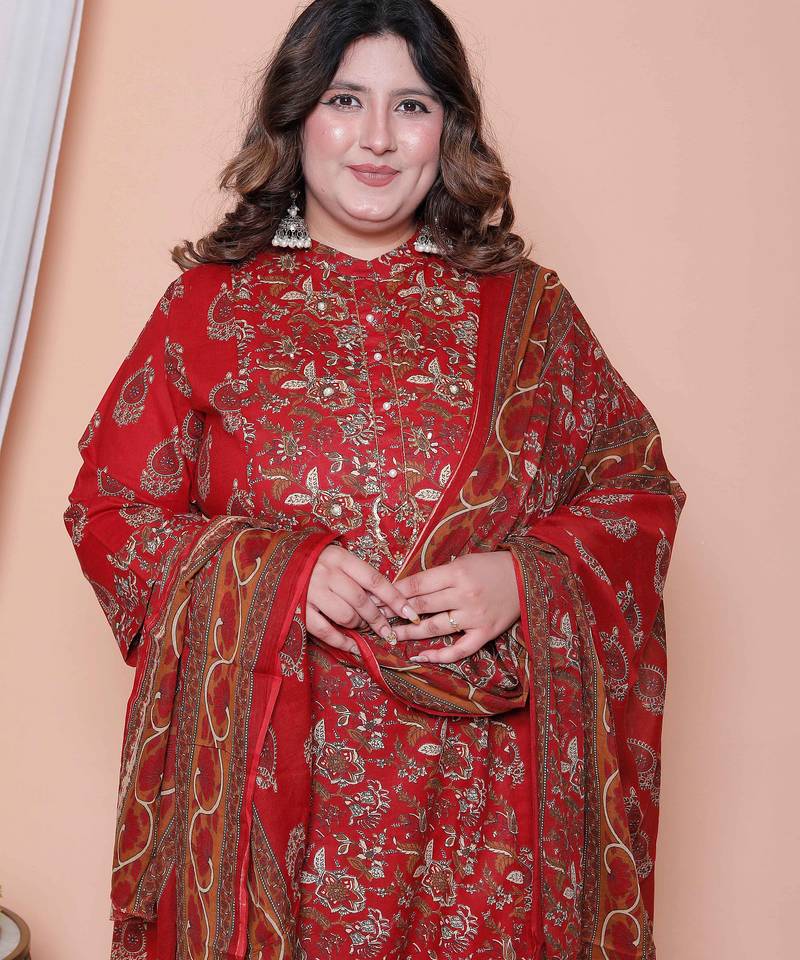 | Product Name | Women Floral Print Cotton Maroon Stitched Kurta Palazzo With Dupatta Set | |
