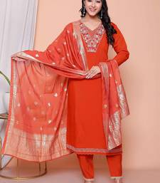 | Product Name | Womens Orange Embroidery Straight Kurta With Palazzo And Dupatta Set | |
