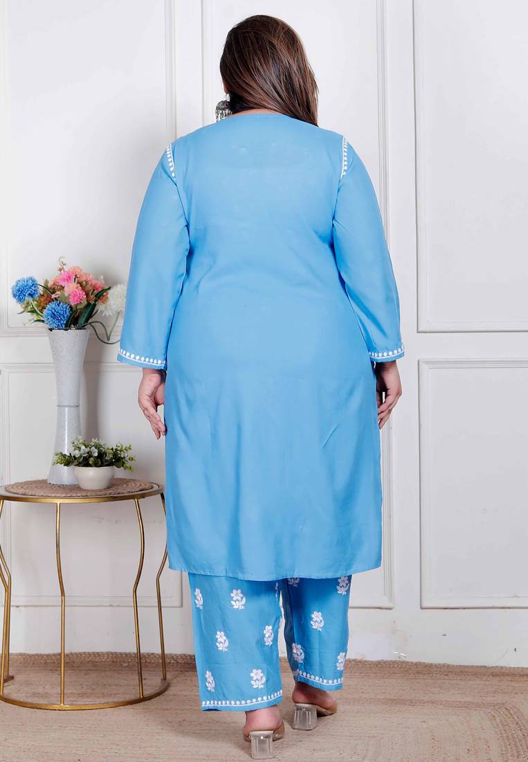 | Product Name | Womens Plus Size Blue Embroidered Kurta With Palazzo | |