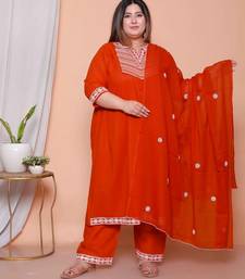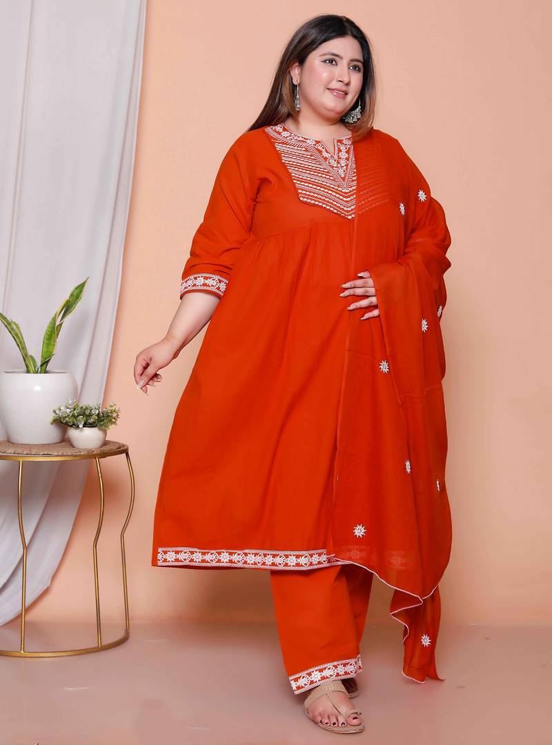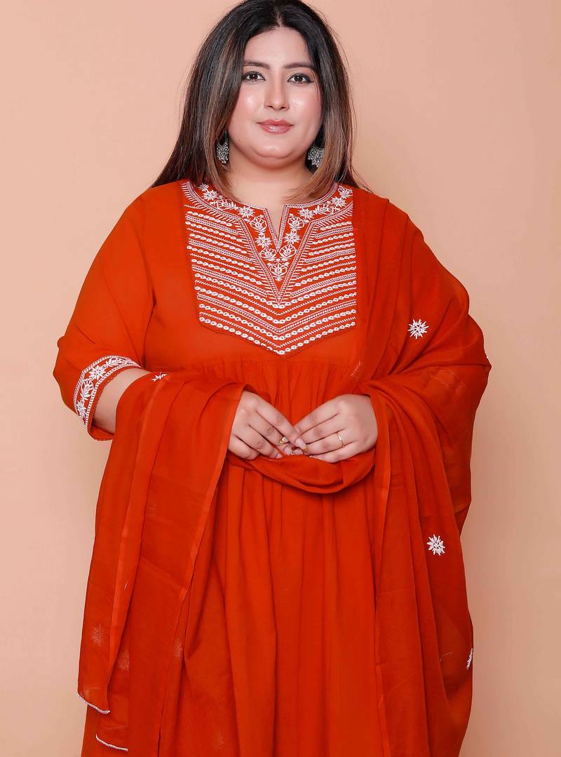 | Product Name | Womens Plus Size Floral Embroidered Rust Straight Cotton Kurta & Palazzo With Dupatta Set | |