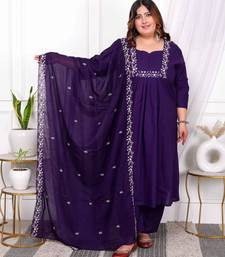 womens plus size purple embroidered kurta with palazzo and dupatta set stitched