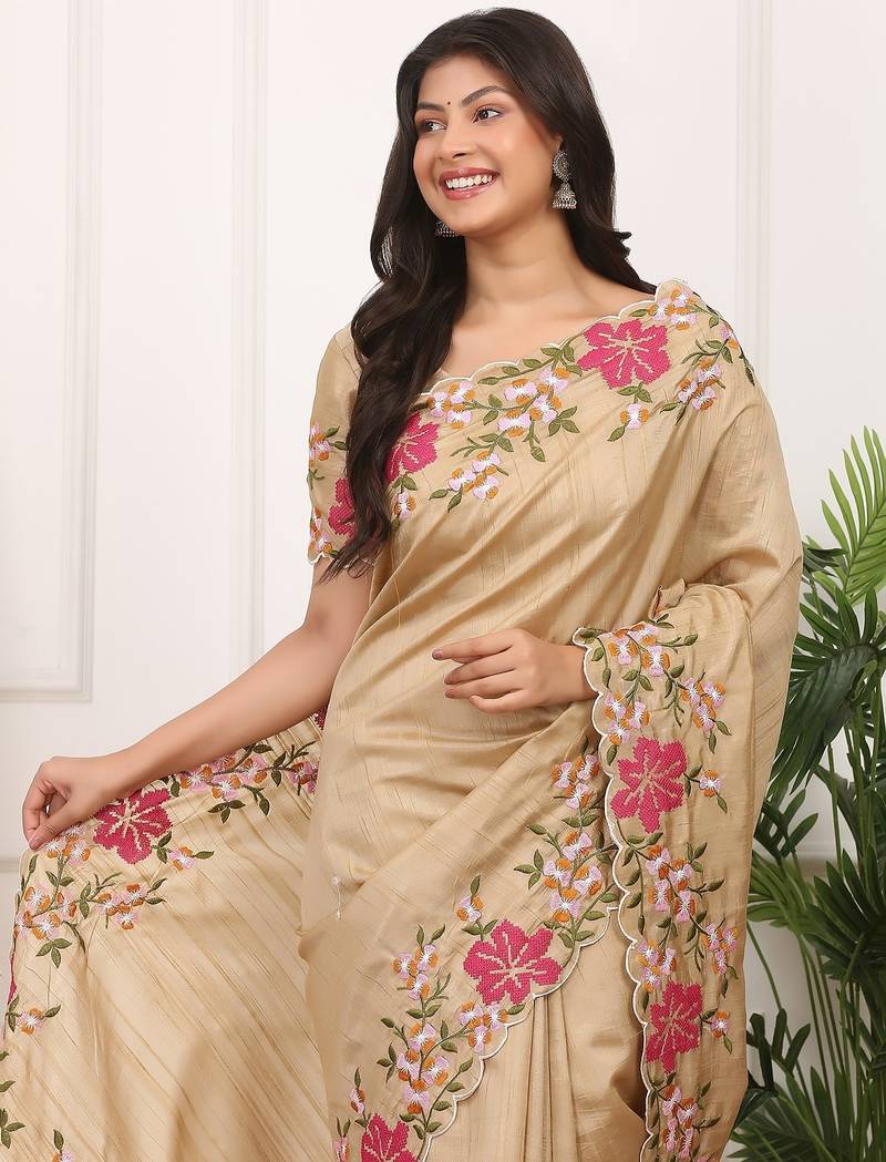 | Product Name | Beige Embroidered Blouse With Embroidered Saree | |