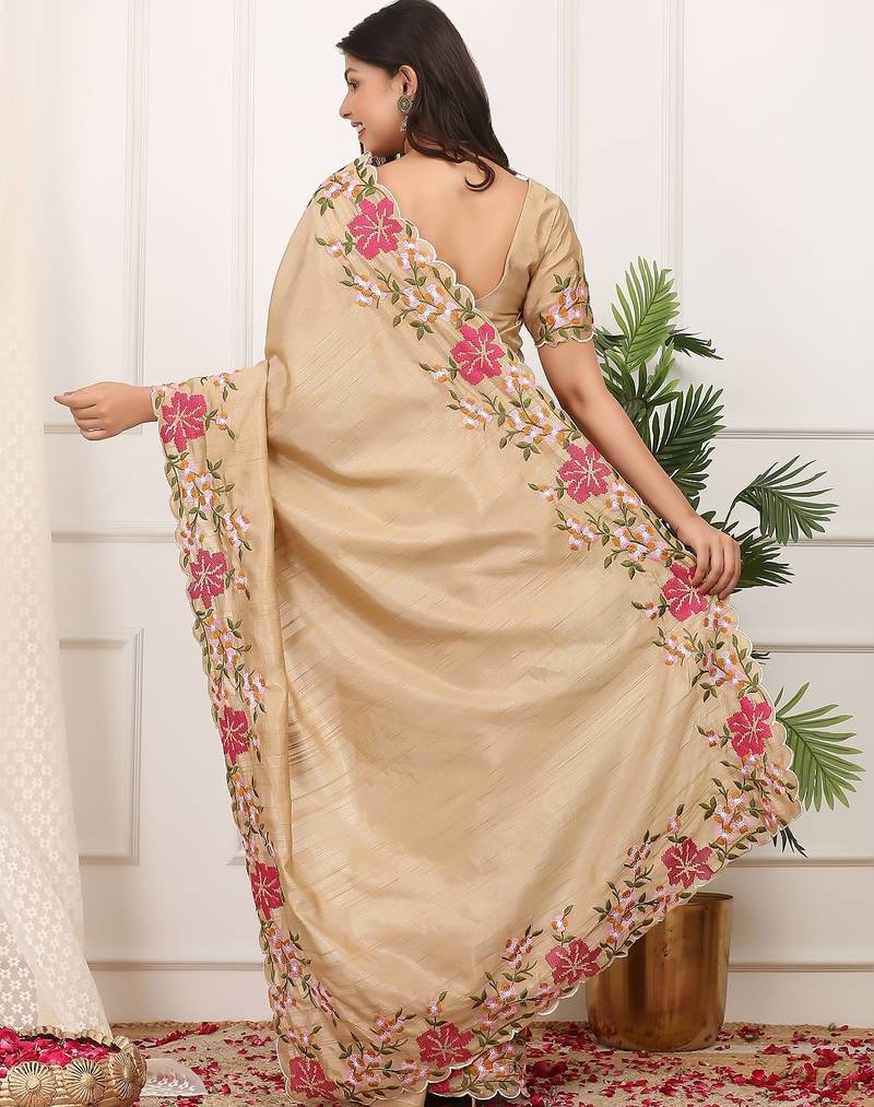 Beige embroidered blouse with embroidered saree