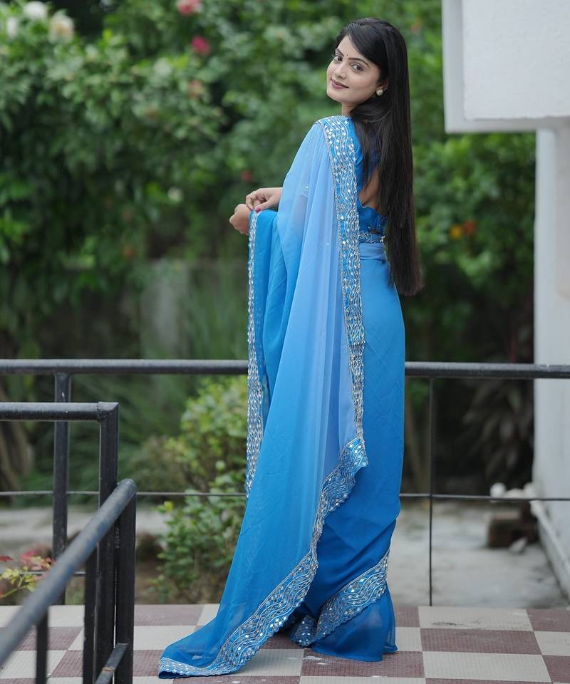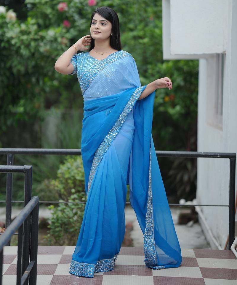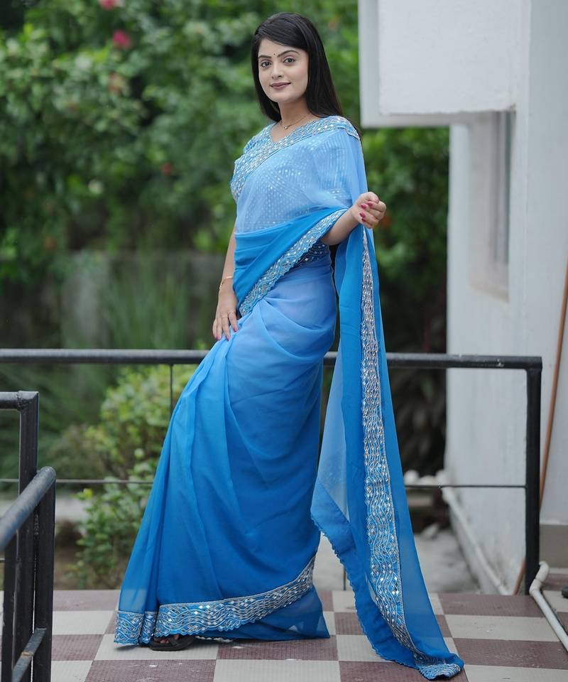 | • | Saree | : | Color- Blue / Fabric- Faux Georgette |
