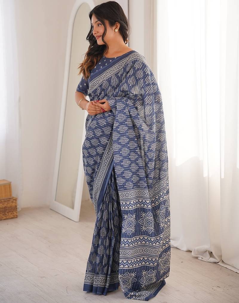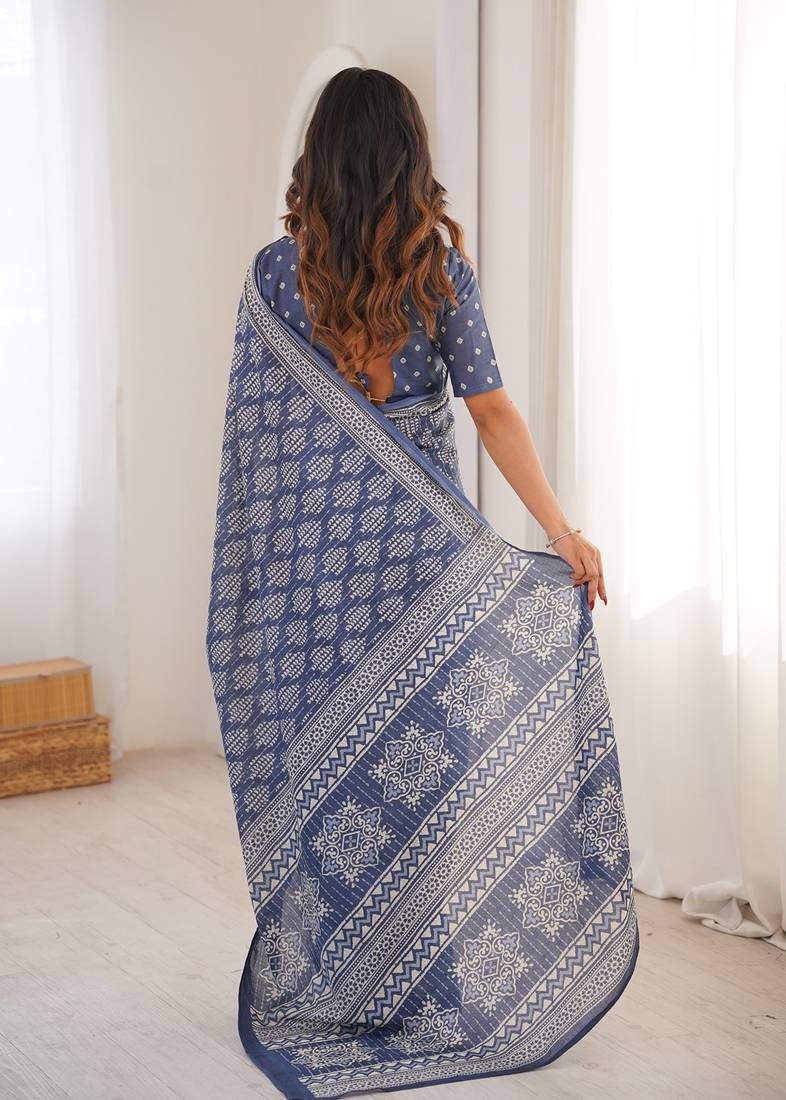| Product Name | Grey Bloue Piece With Cotton Printed Saree | |