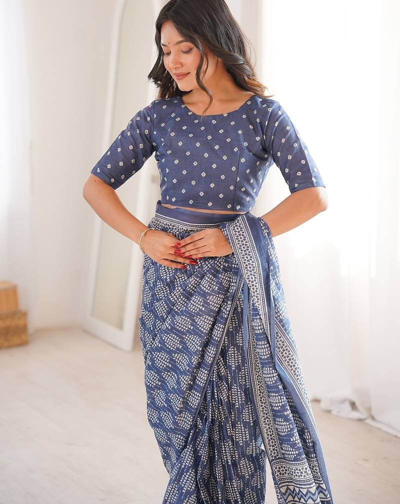 | Product Description | Pure Cotton Saree & Blouse Fabric. Saree & Blouse Both Are Printed Design. |