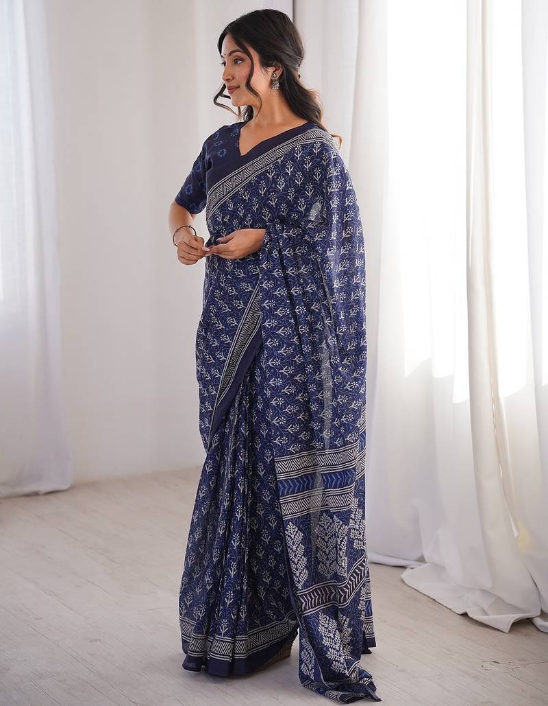 | Product Name | Indigo Bloue Piece With Cotton Printed Saree | |