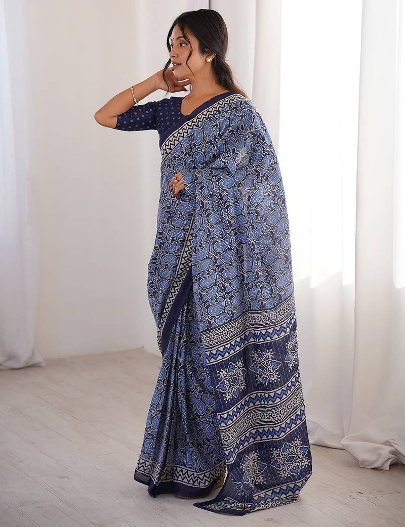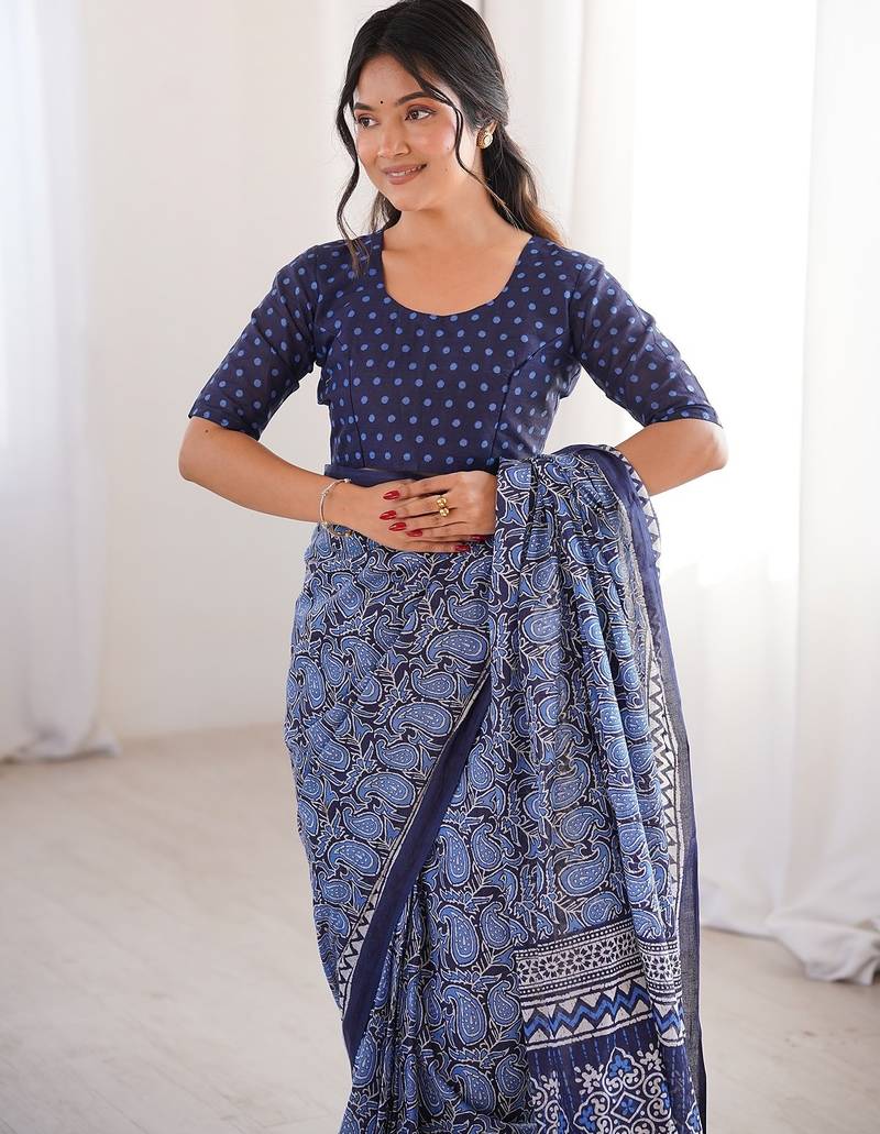 | Product Name | Indigo Bloue Piece With Cotton Printed Saree | |