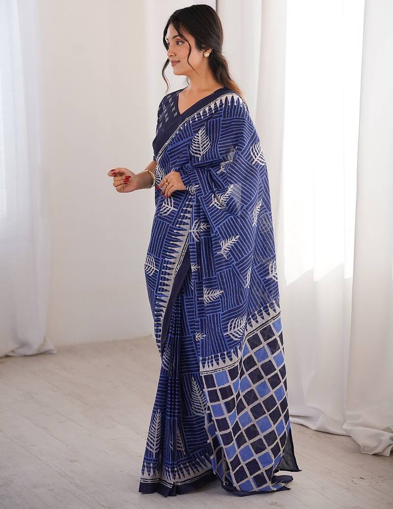 | Product Name | Indigo Bloue Piece With Cotton Printed Saree | |
