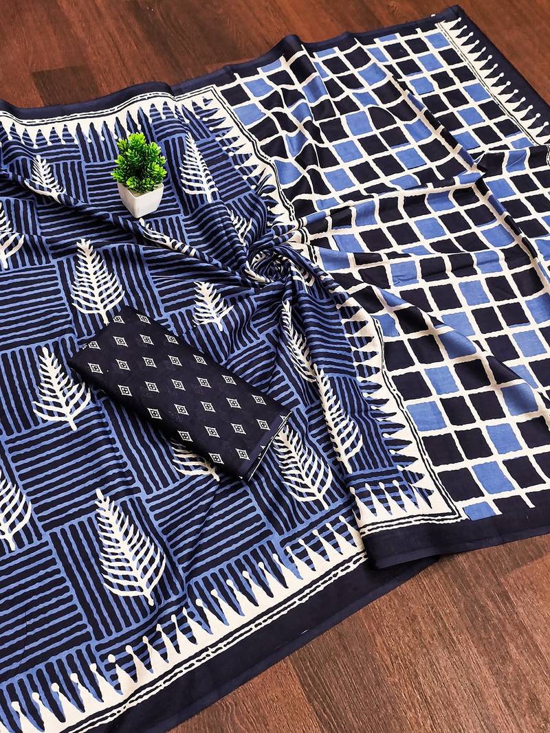 | Product Description | Pure Cotton Saree & Blouse Fabric. Saree & Blouse Both Are Printed Design. |