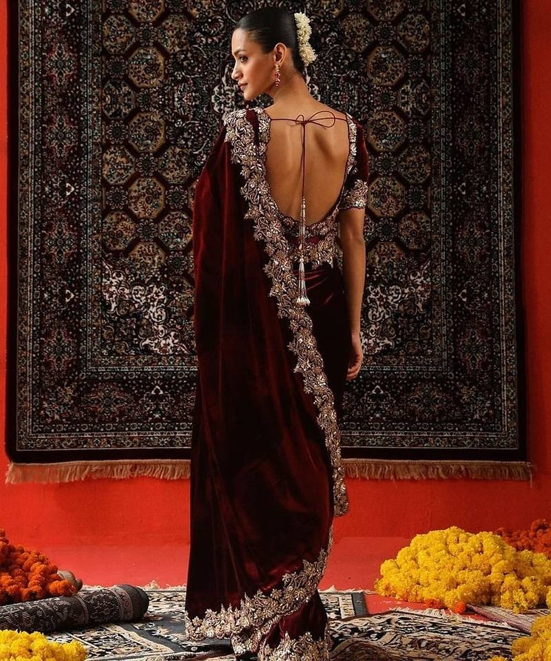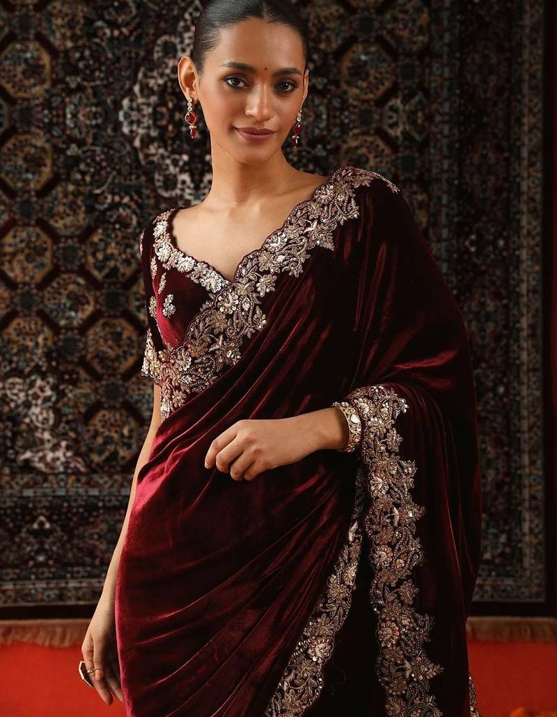 | • | Saree | : | Color- Maroon / Fabric- Velvet |
