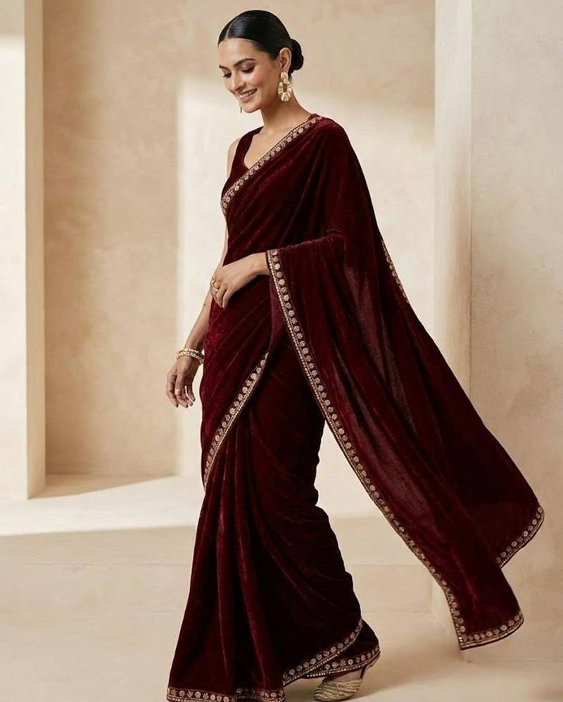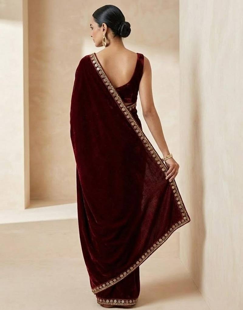 | • | Saree | : | Color- Maroon / Fabric- Velvet |