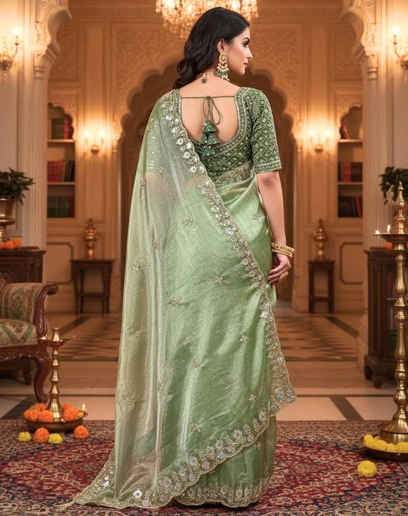 | Product Name | Mint Green Embellished Saree With Embellished Blouse | |