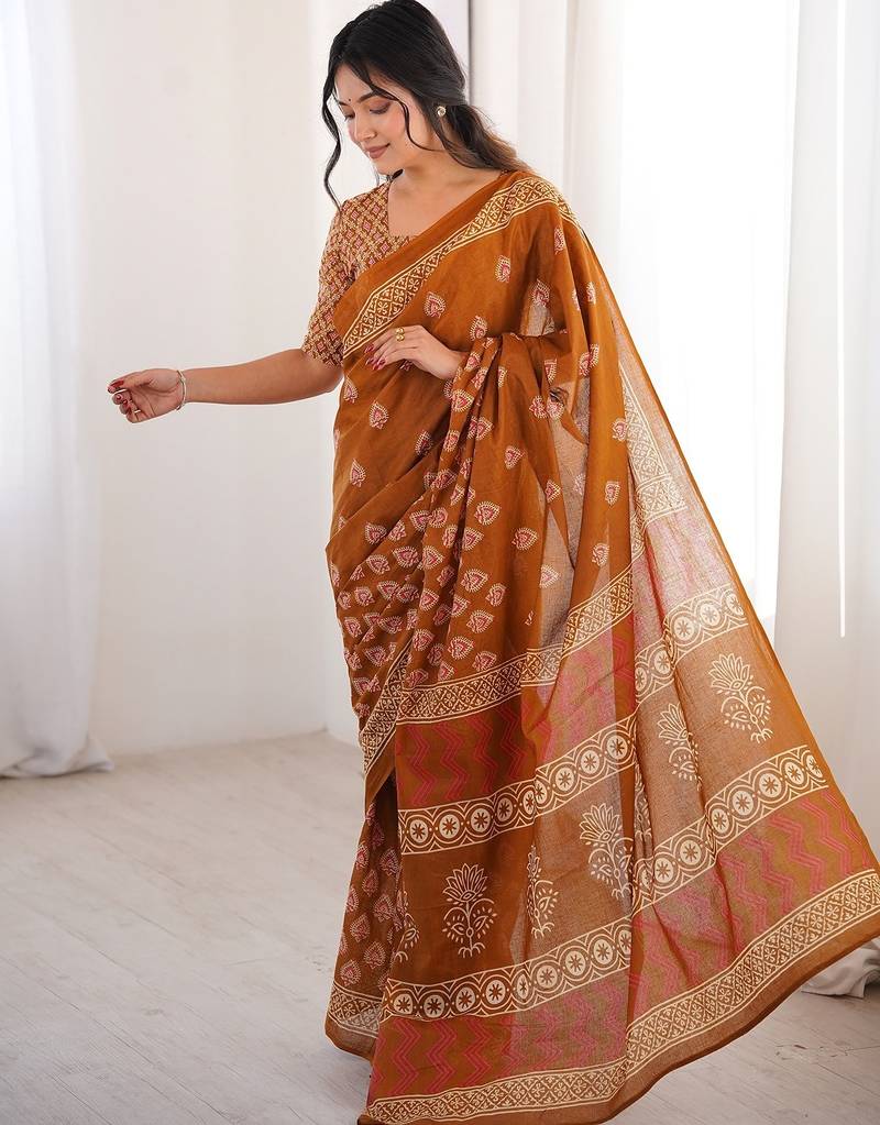 | Product Description | Pure Cotton Saree & Blouse Fabric. Saree & Blouse Both Are Printed Design. |