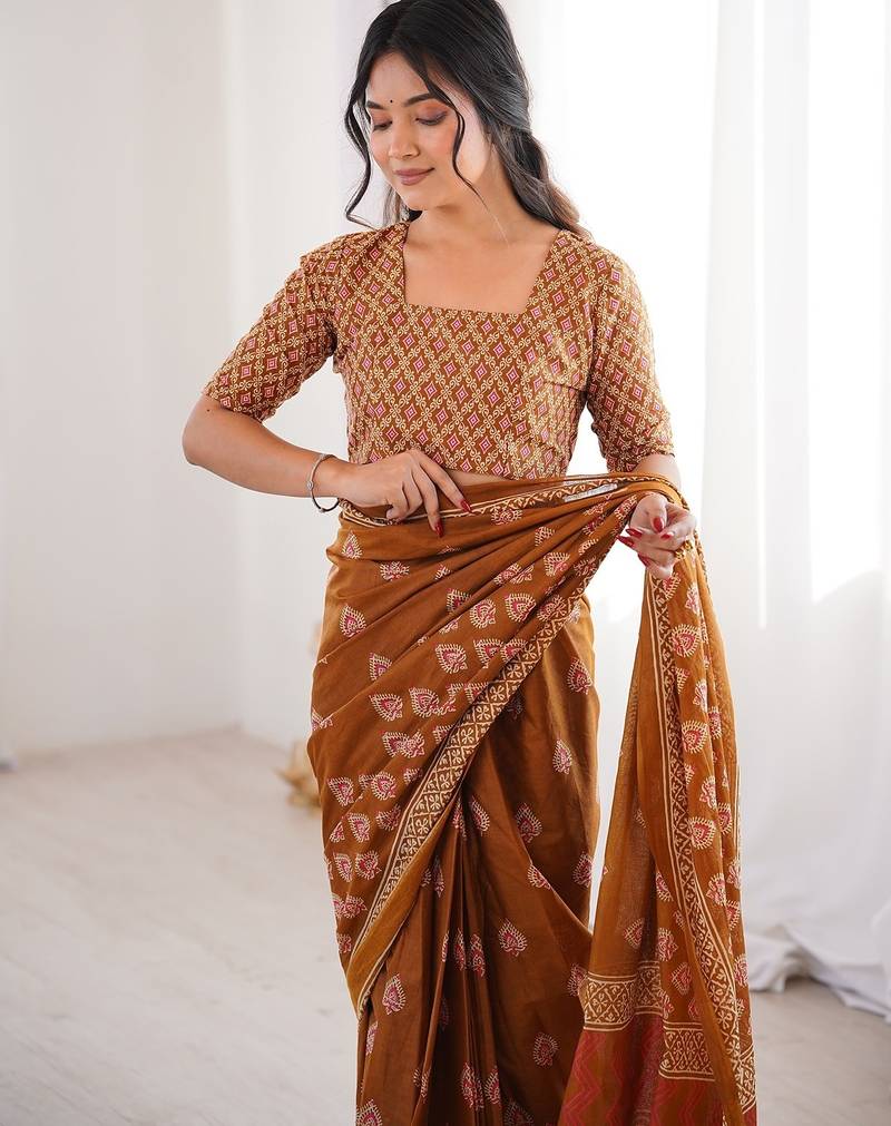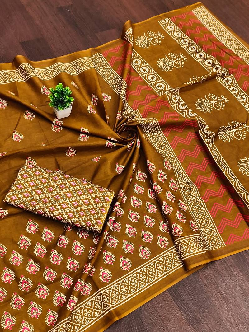 | Product Name | Musterd Bloue Piece With Cotton Printed Saree | |