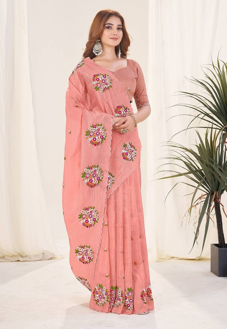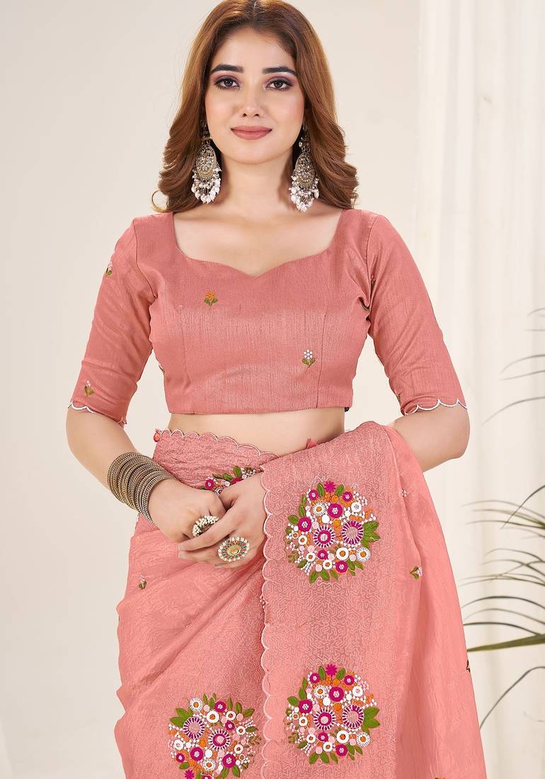 | Product Name | Peach Embroidered Blouse With Embroidered Saree | |