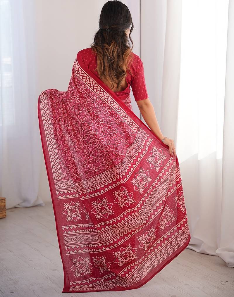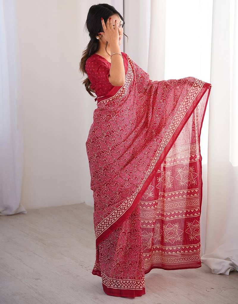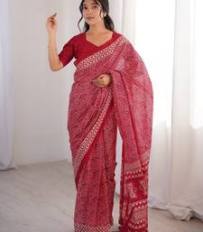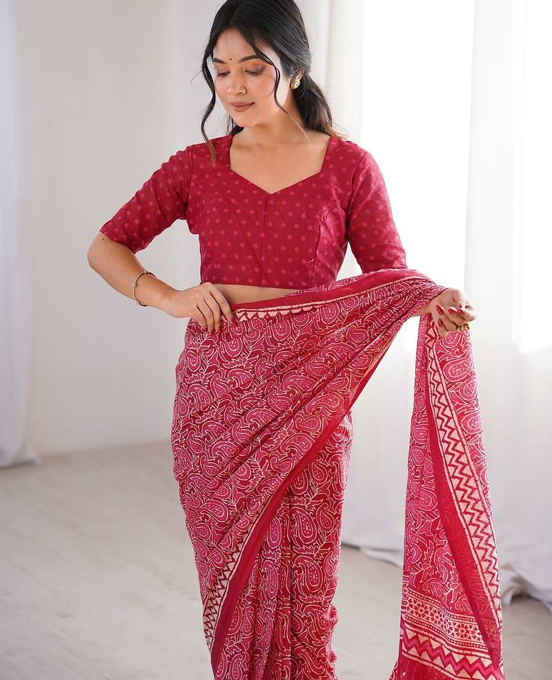 Pink bloue piece with cotton printed saree