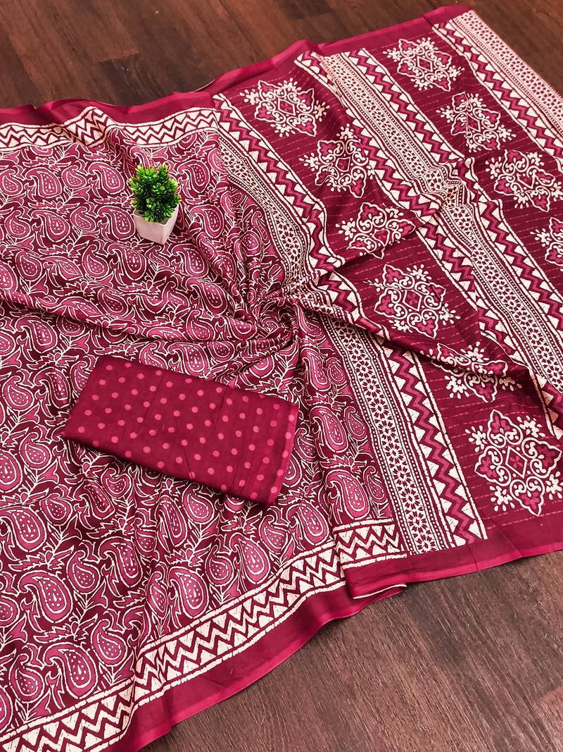 | Product Description | Pure Cotton Saree & Blouse Fabric. Saree & Blouse Both Are Printed Design. |