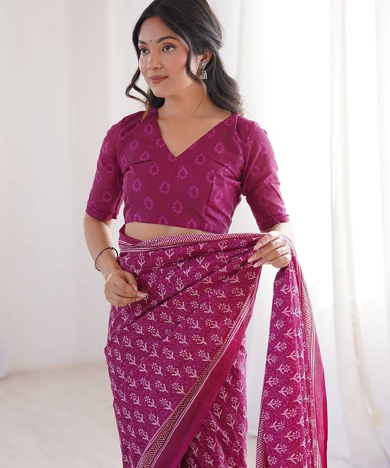 | Product Description | Pure Cotton Saree & Blouse Fabric. Saree & Blouse Both Are Printed Design. |