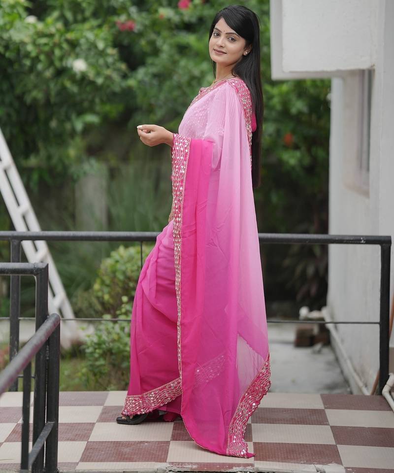 | • | Saree | : | Color- Pink / Fabric- Faux Georgette |