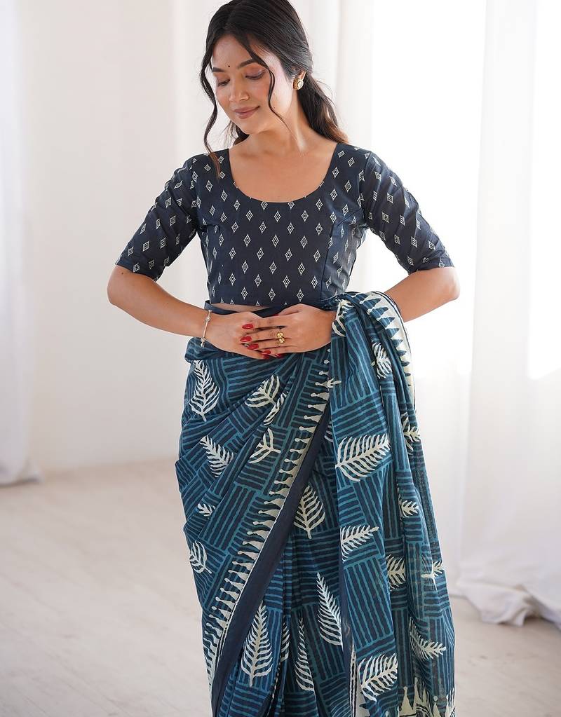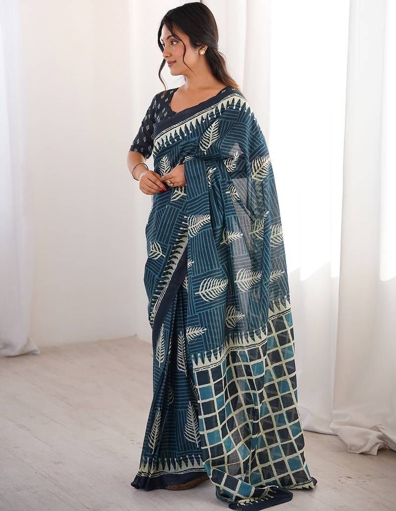 | Product Description | Pure Cotton Saree & Blouse Fabric. Saree & Blouse Both Are Printed Design. |