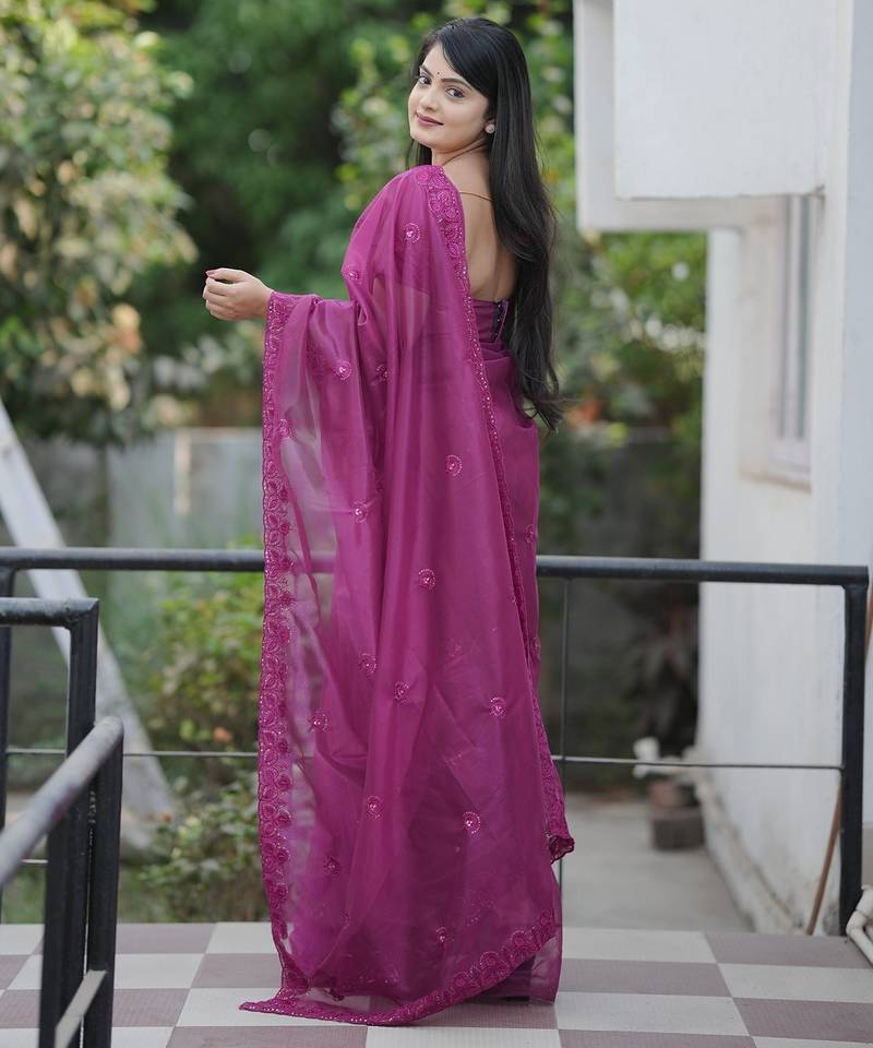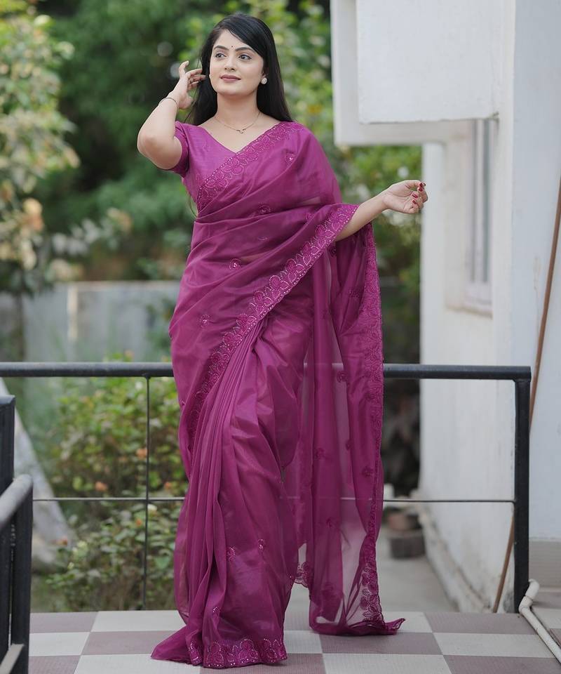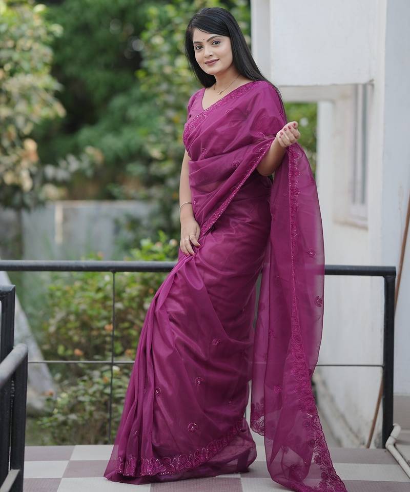 | Product Name | Wine Embroidered Blouse With Embroidered Saree | |