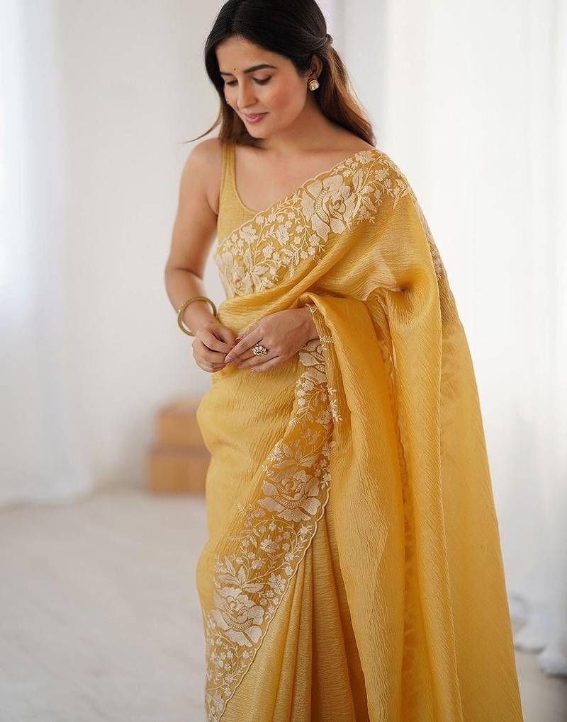 | Product Name | Yelllow Embroidered Blouse With Embroidered Saree | |