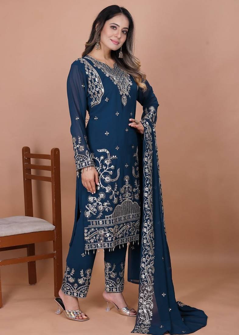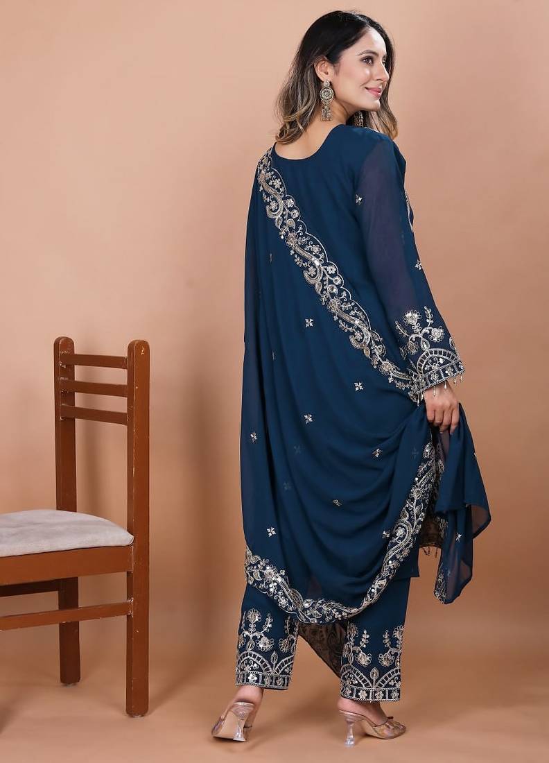 | Product Name | Navy Blue Georgette Party Wear Embroidery Sharara Suit Set | |