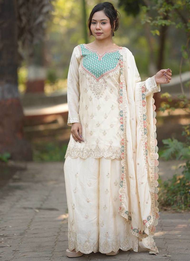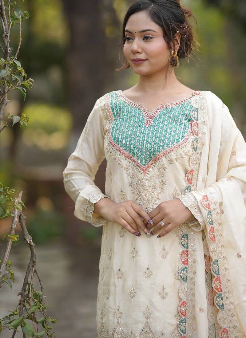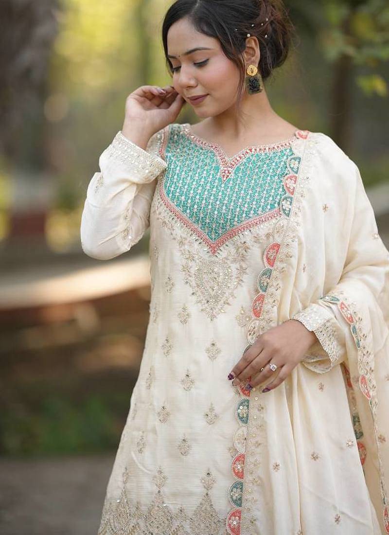 | Product Name | White Georgette Party Wear Embroidery Salwar Suit Set | |