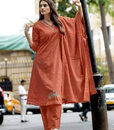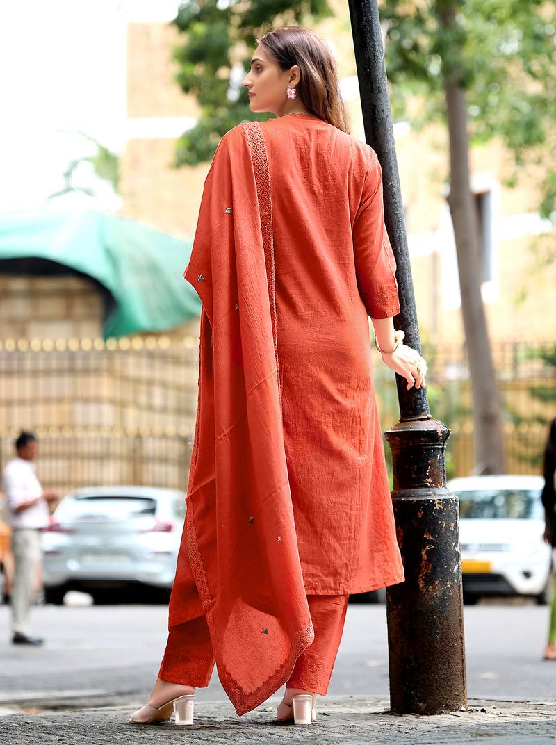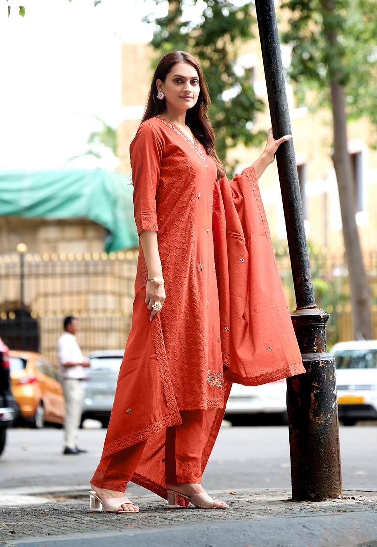 Ethnic embroidered pure cotton kurta with pent & dupatta