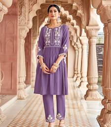 Ethnic motifs embroidered thread work viscos bulti kurta with trouser