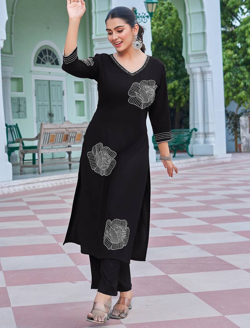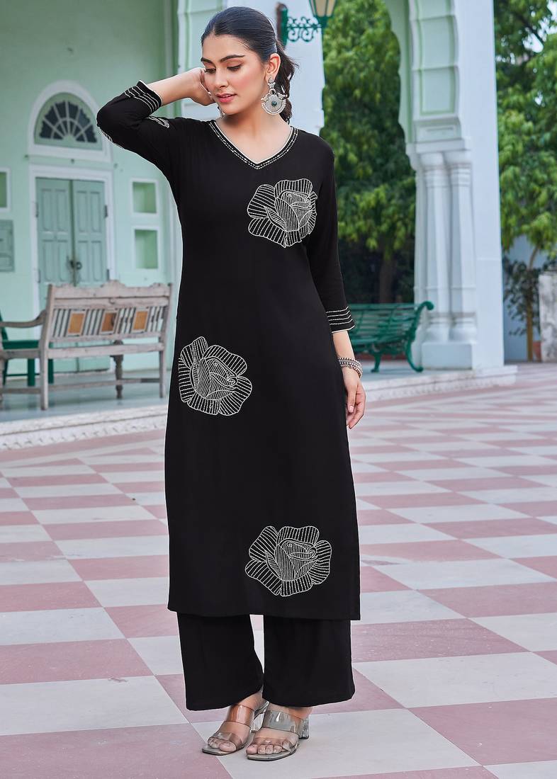Product Name | Floral Embroidered V Neck Thread Work Straight Kurta With Palazzo | |