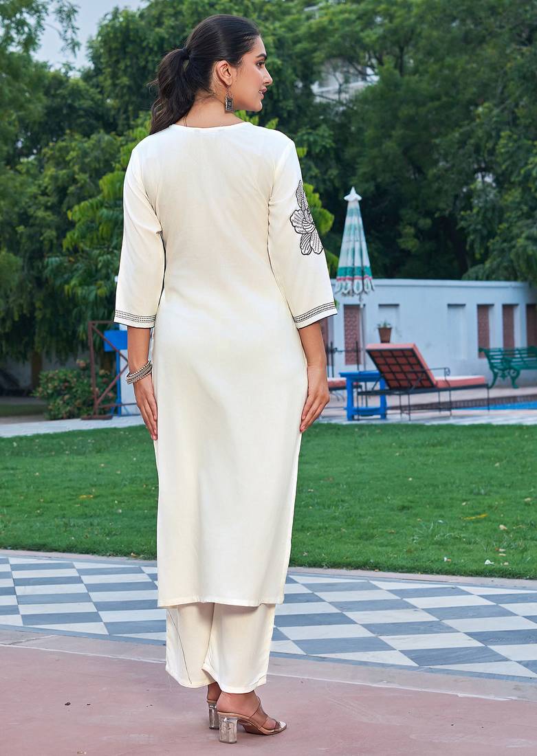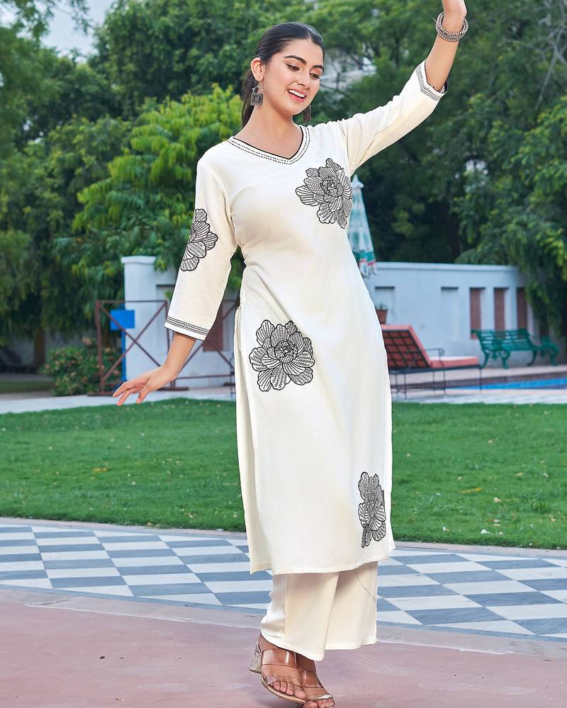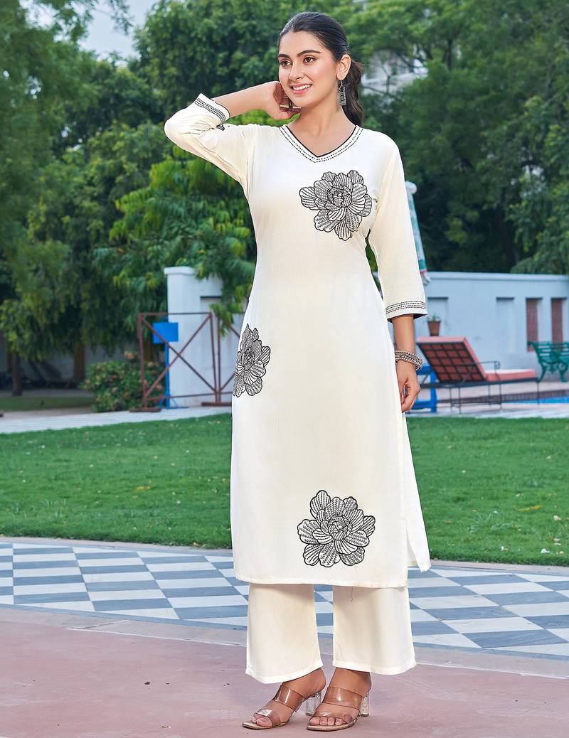 Product Name | Floral Embroidered V Neck Thread Work Straight Kurta With Palazzo | |
