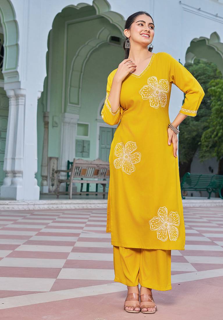 Product Name | Floral Embroidered V Neck Thread Work Straight Kurta With Palazzo | |