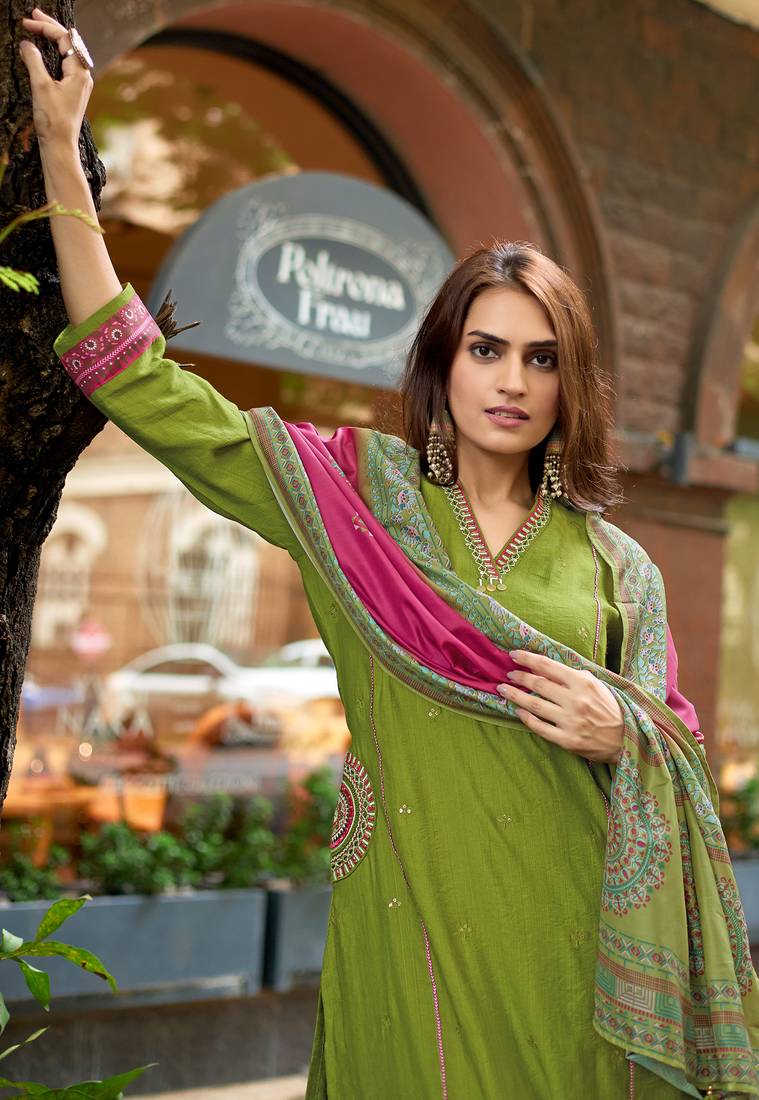 | • | Dupatta | : | Color- Green / Fabric- Silk |