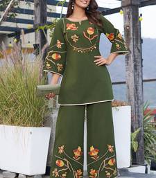 Women embroidered pure cotton top with trousers