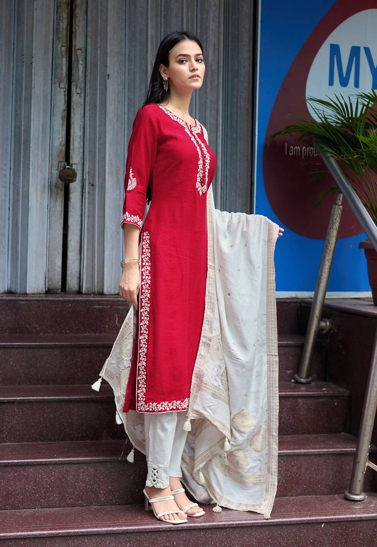 Product Name | Women Embroidered Straight Kurta With Trousers & Dupatta | |