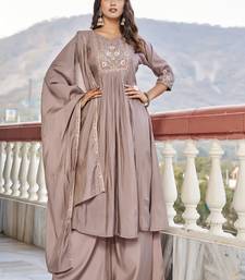 Women embroidered thread work mull chanderi kurta with palazzo & with dupatta