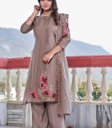 Women embroidered thread work mull chanderi kurta with palazzo & with dupatta