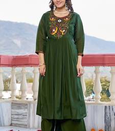 Women floral embroidered empire thread work dhabu cotton kurta pant with dupatta